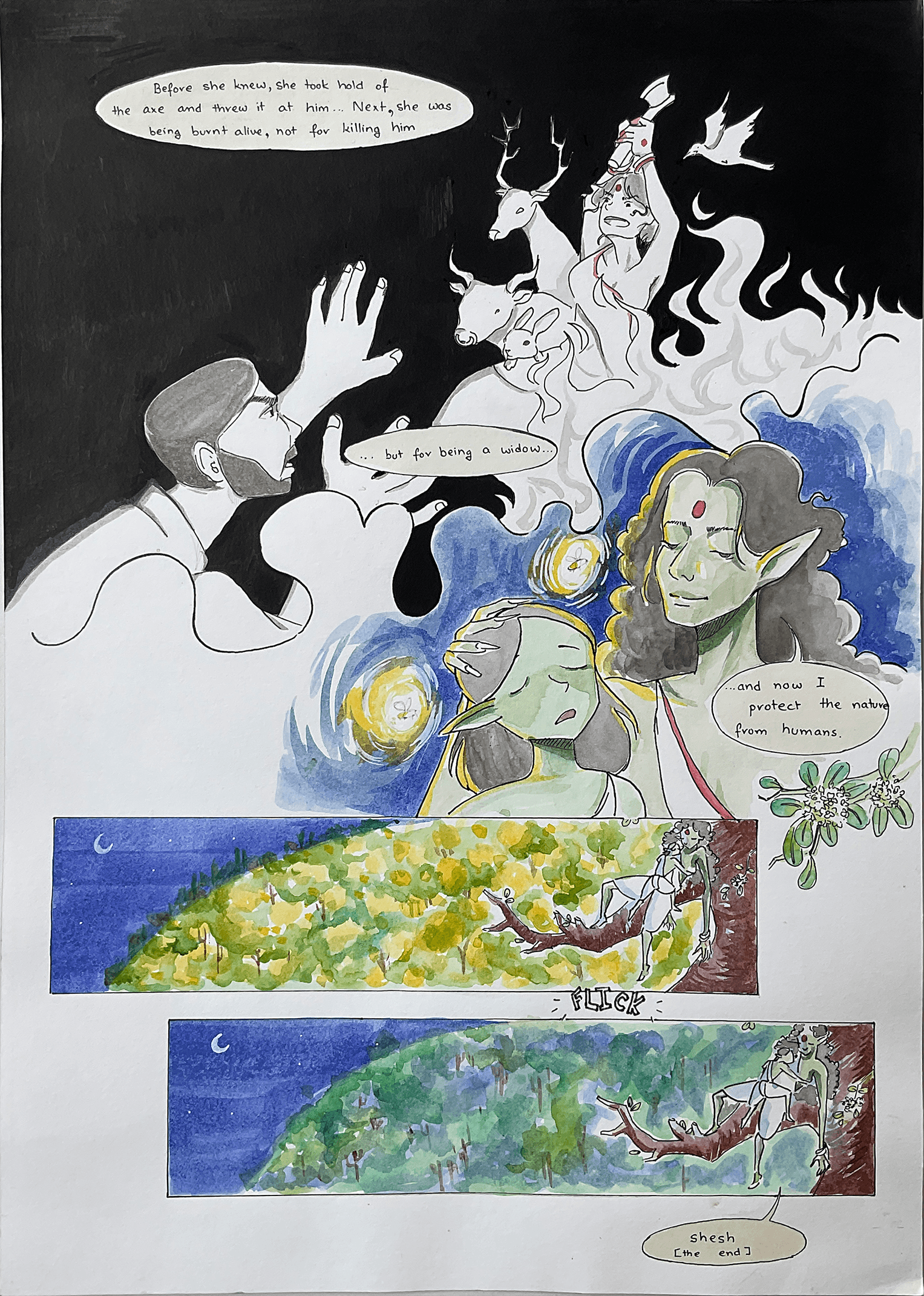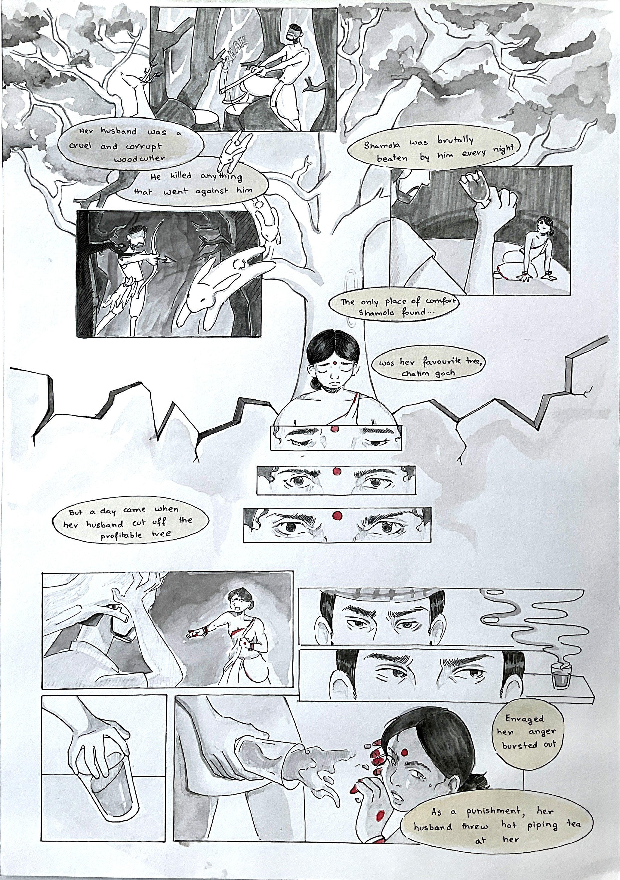 A Shakchunni tells her child a story of a young girl with dark skin, married to a cruel woodcutter. After he destroys her solace, the chatim tree, the girl kills him in a fit of rage, only to feel the burden of guilt. In the dream world, the Shakchunni reveals she was the girl in her past life and now protects the forest as a demon, alongside others who denied nature from humans